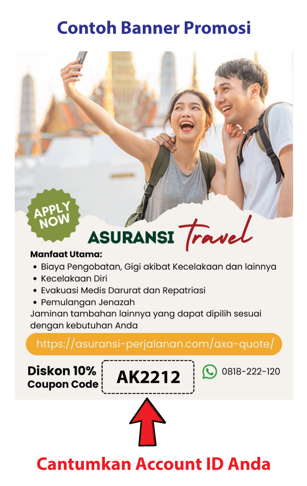 Tak perlu pengalaman di bidang asuransi! Kami akan memberikan Account ID yang dapat dipergunakan sebagai Referral Code, Kode Promo atau Coupon Code yang dapat Anda promosikan di media sosial Anda.
